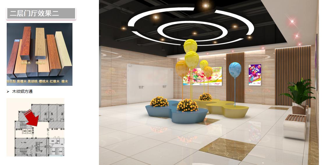 大堂的設計簡潔大氣,讓顧客感到豁然開朗、身心放松。在公共空間采用了優雅的。米色為主基調,木紋又使人感到親切和自然,并用金屬材料和防仿大理石瓷磚覆蓋商場公共空間的墻面,在契合時尚這一主題的同時,又不失端莊。設計師從走廊的這頭引導客流走向另一頭,吸引顧客瀏覽購物。在天花的點綴上采用了抽象的水滴造型設計,將水滴這一個孕育文明的重要元素非常討巧地結合當地蒙古族藝術和文化的角度切入,完美融入到現代的建筑中。
